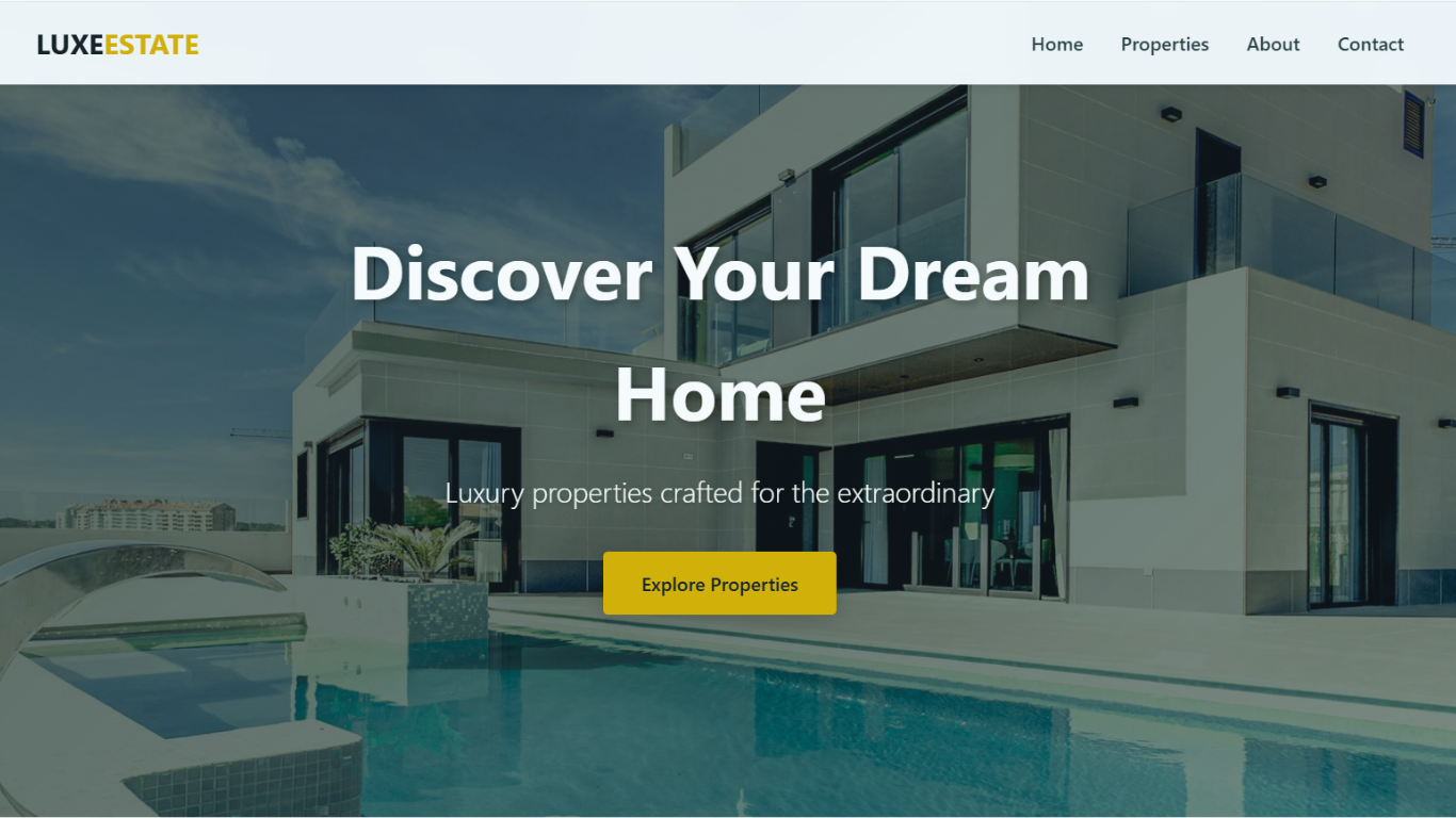 ✔ Modern UI with smooth animations, gold accents, hero banner, property cards & contact form